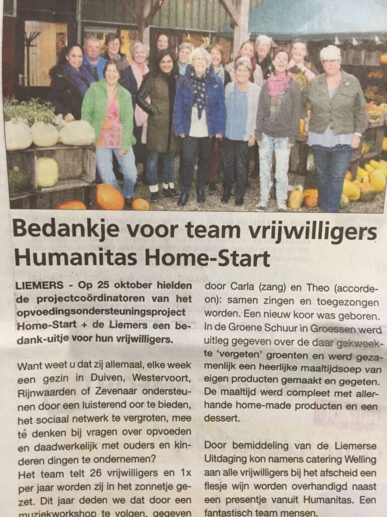 In oktober 2016 organiseren mijn collega en ik een vrijwilligersuitje voor ons team vrijwilligers dat wekelijks opvoedingsondersteuning biedt aan gezinnen met kinderen in de leeftijd van 0-14 jaar die tijdelijk behoefte hebben aan een steuntje in de rug.