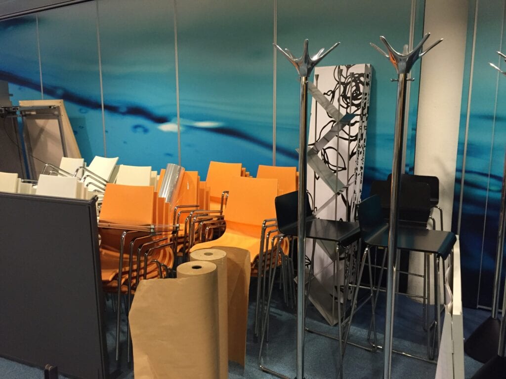 Voor de inrichting van het gemaal Oude Rijn in Pannerden is een beroep gedaan op o.a. stoelen in de spullenbank, materiaal beschikbaar gesteld door Rabobank Arnhem en Omstreken, Media Markt en @Work Uitzendbureau.