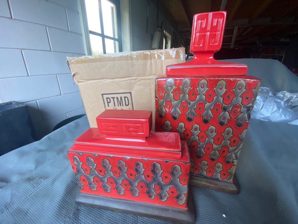 Leuke rode decoratieve vazen van PTMD. Nog 10 beschikbaar Aangeboden door Stg Klussen en Kringloop Didam Tijdens Beursvloer de Liemers gematcht met diverse aanwezige deelnemers 2023-03-26 19:12:08